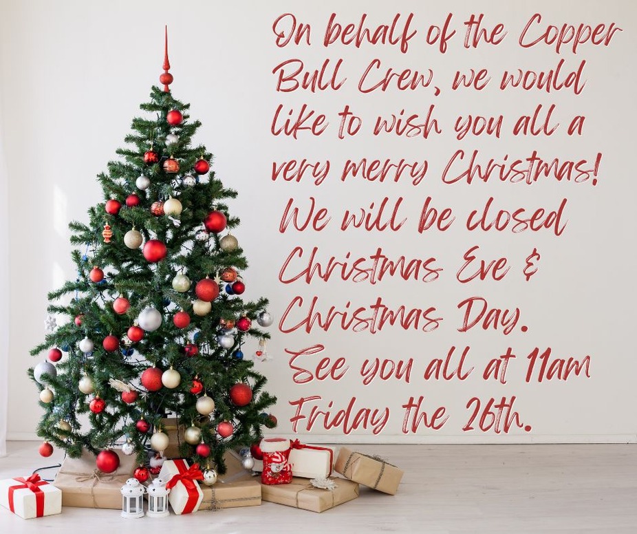Copper Bull will be closed for both Christmas Eve as well as Christmas Day.